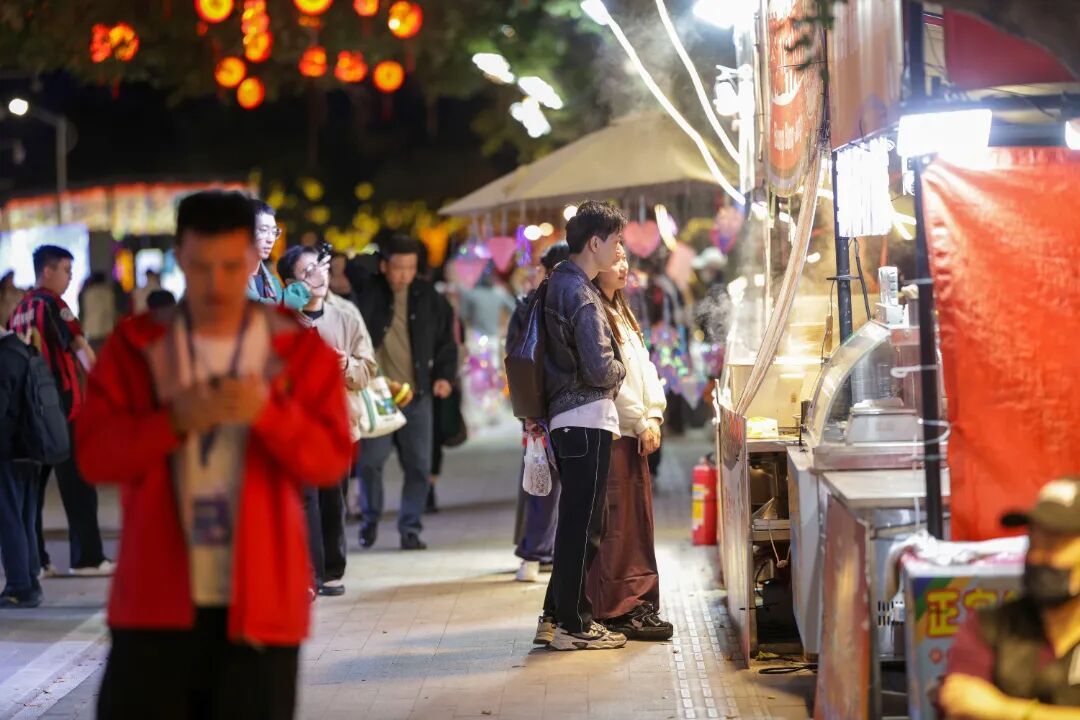 南沙万达广场、南沙星河COCO Park、南沙环宇城、悦方城等商圈里人声鼎沸,餐饮店门前排起长龙,购物、观影的人们摩肩接踵,亦有不少市民买张彩票图个“开局有彩”,处处都是热气腾腾的消费活力。