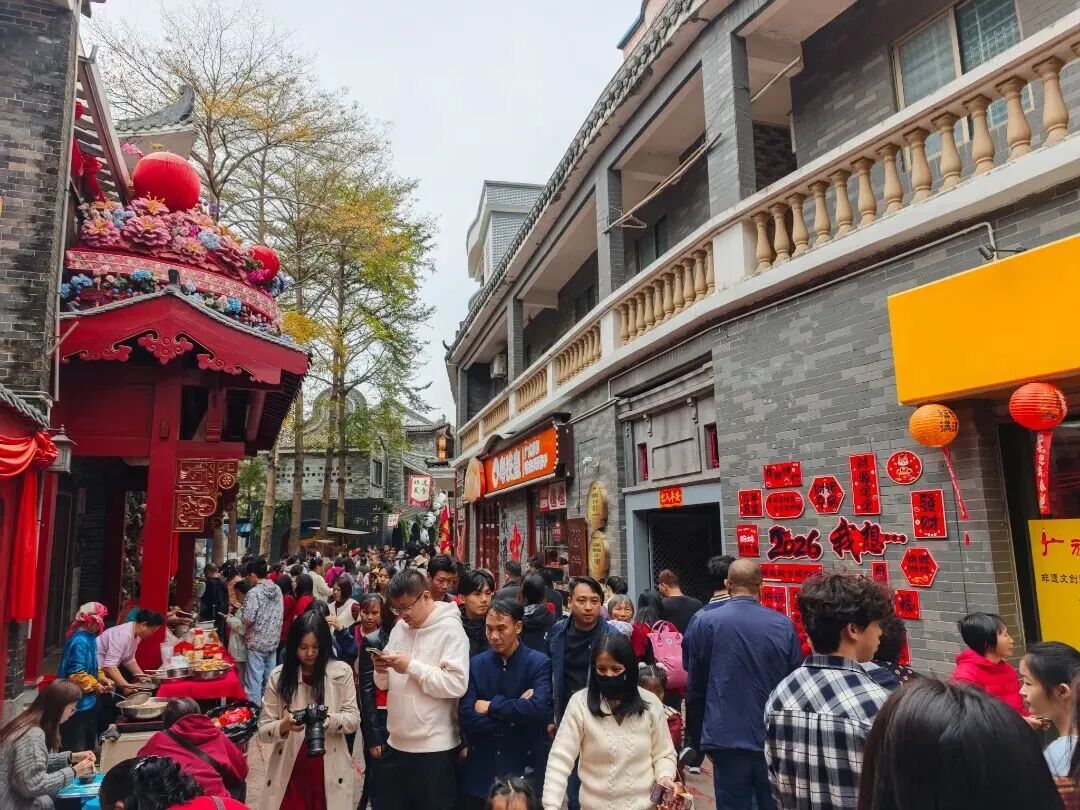青砖黛瓦映流水,锣鼓欢声漾水乡。东涌镇东涌里街区,开启了一场以“‘马’住快乐 福到‘涌’来”为主题的东涌新春水乡游园活动。活动现场,“马上寻福”打卡任务成为市民游客的欢乐主线。陆上,游客手持任务卡,沉浸式感受东涌的文化魅力;水上,疍家船化身“福船”,福禄寿三星、财神等“福船使者”泛舟河涌,与游客隔空互动,再现了岭南水乡“以水为媒”的独特年味。